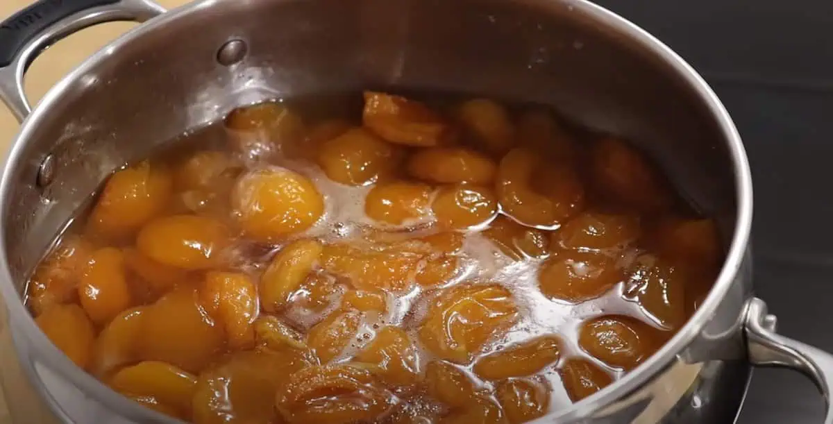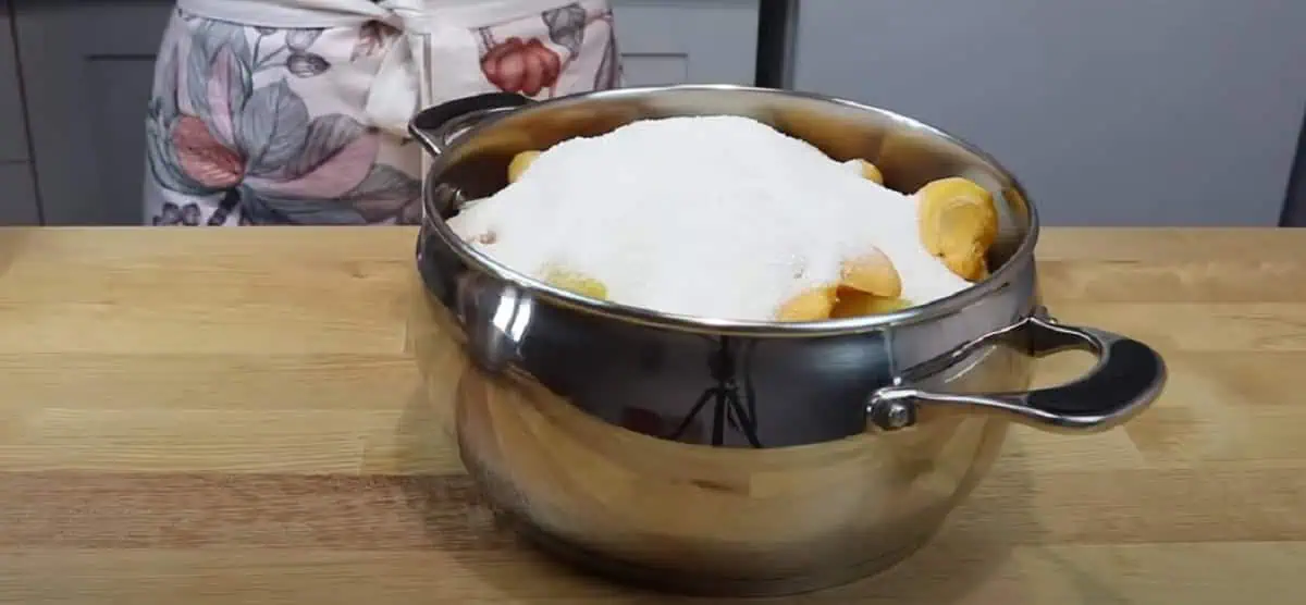 Zľahka hrncom potrasieme, aby sa cukor dostal do marhúľ.