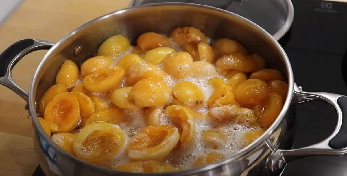 4. Keď marhule pustia šťavu, položíme hrniec na mierny ohrev a marhule privedieme do varu.