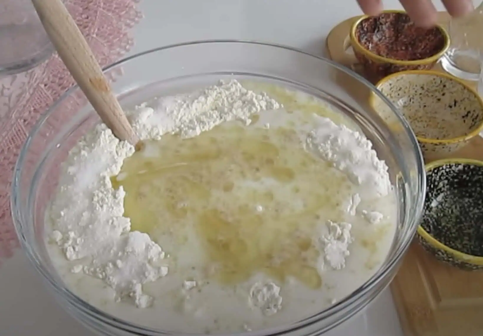 Múku preosejeme, pridáme droždie rozmiešané vo vode, mlieko, olej, zvyšok vody a soľ.