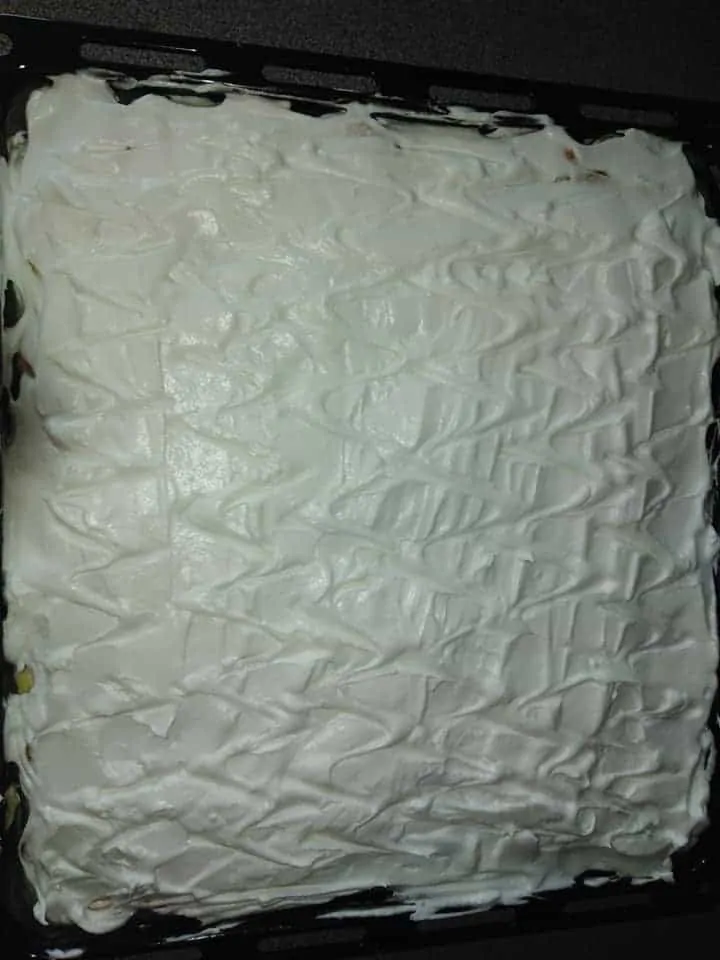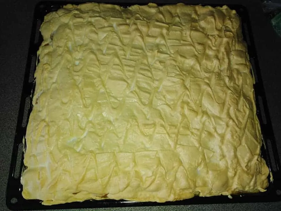 Na vrch navrstvíme sneh, ktorý sme si ušľahali zo 4 bielkov a cukru.