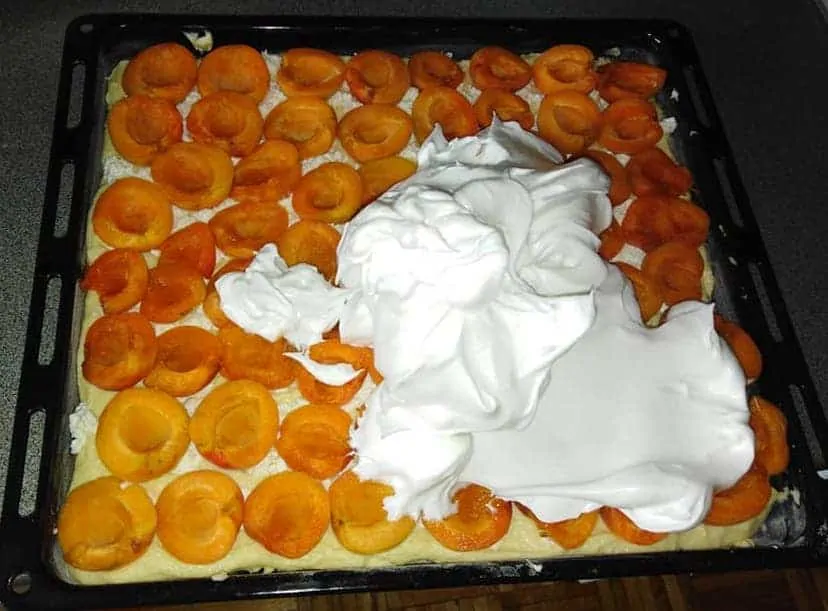 Na cesto anvrstvíme nakrájané marhule, na marhule tvaroh.