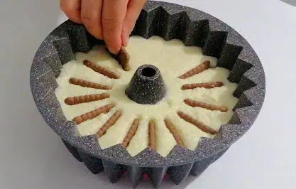 Tortovú alebo bábovkovú formu si vypláchneme studenou vodou a nalejeme do nej horúcu hmotu.