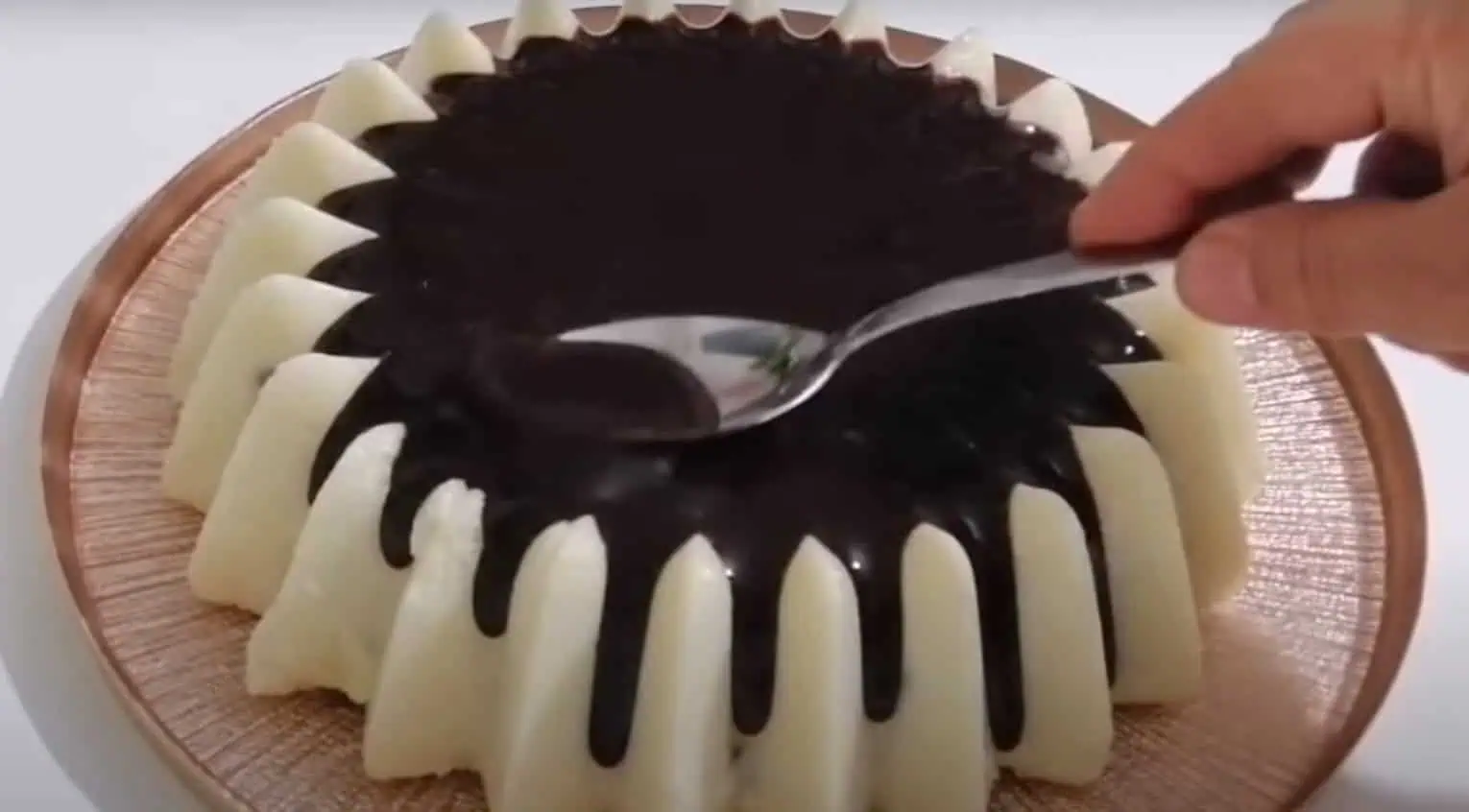 Polevu následne jemne rozotrieme lyžicou, aby stiekla aj po stranách dezertu.