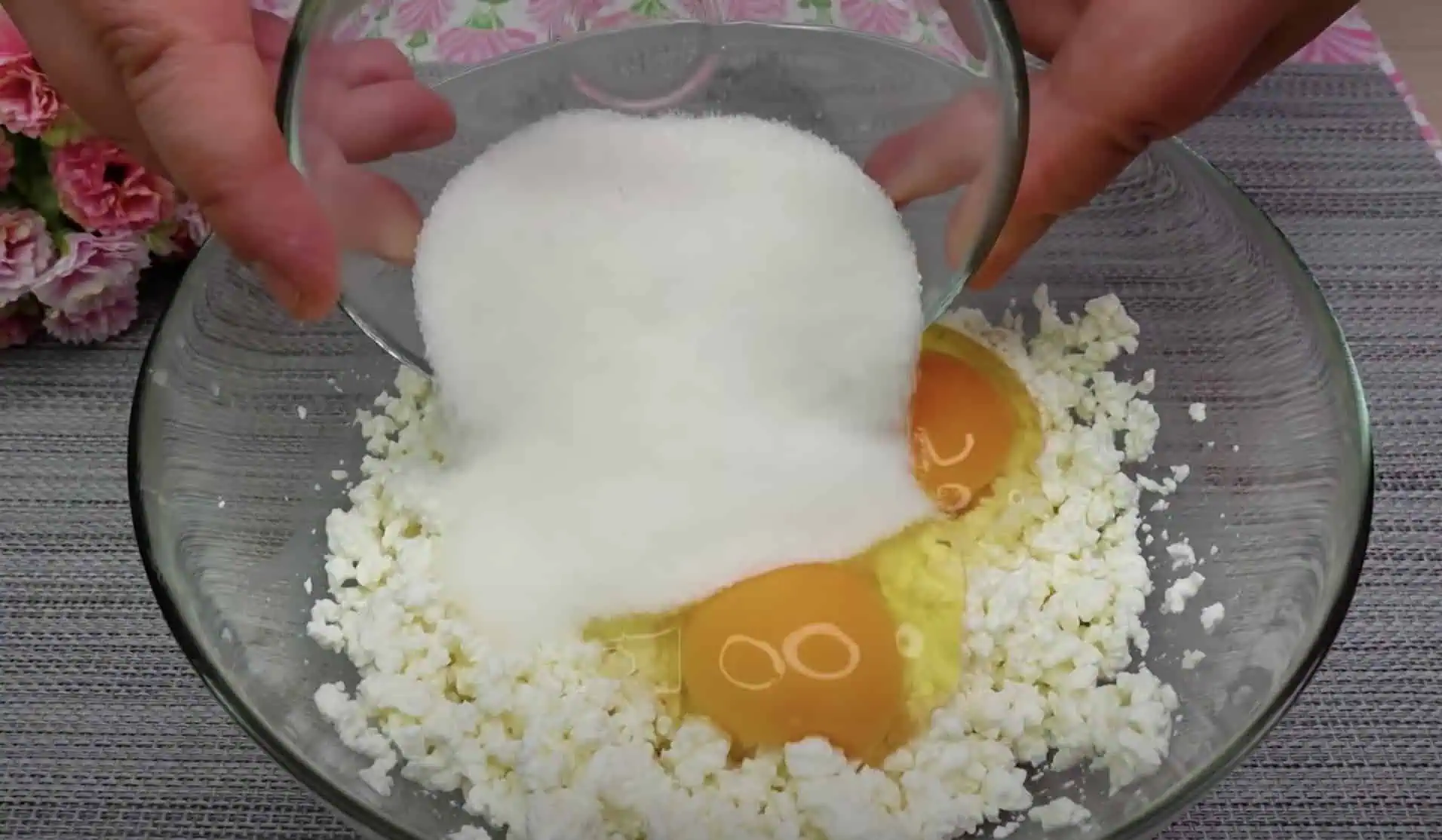 Tvaroh rozmixujeme s vajíčkami, mliekom, cukrom, škrobom a vanilkou.
