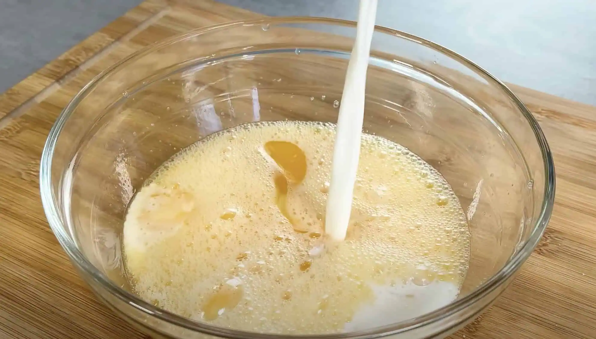 Pridáme mlieko a olej.