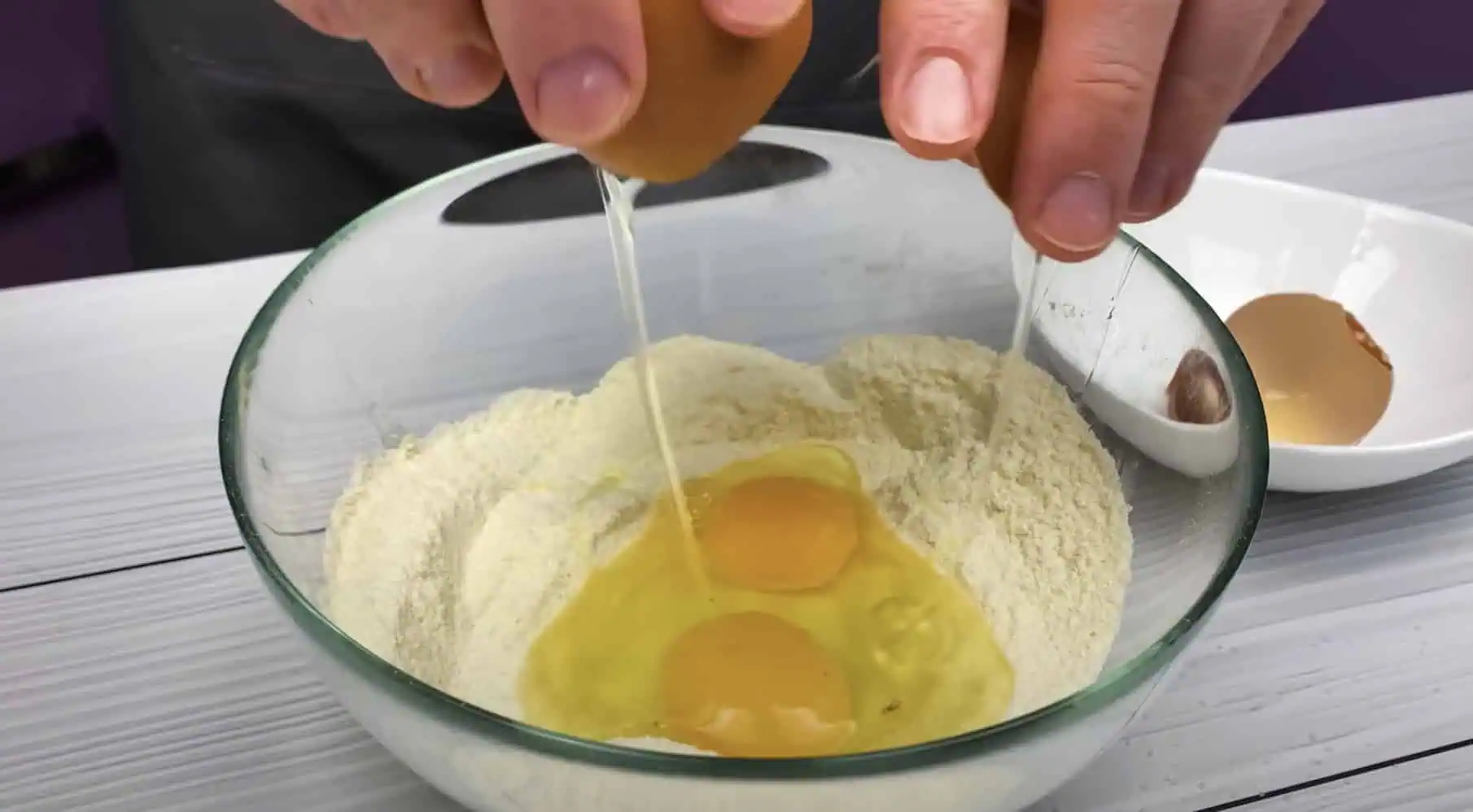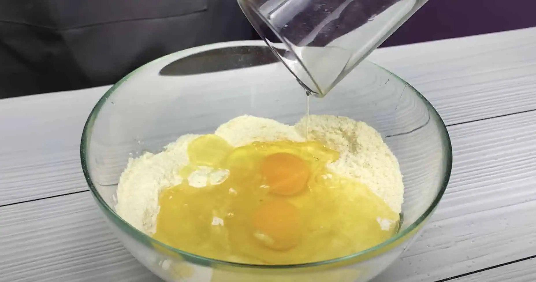 Pridáme rastlinný olej a vajcia.
