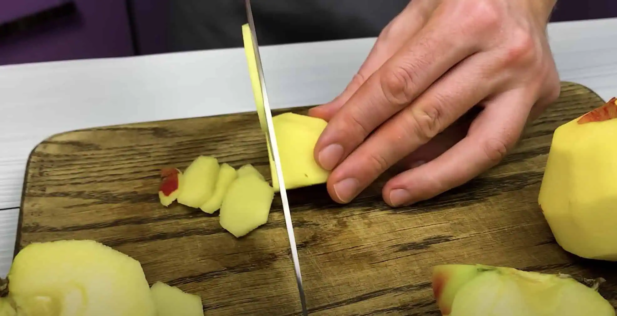 Jablká ošúpeme a nakrájame na kocky.