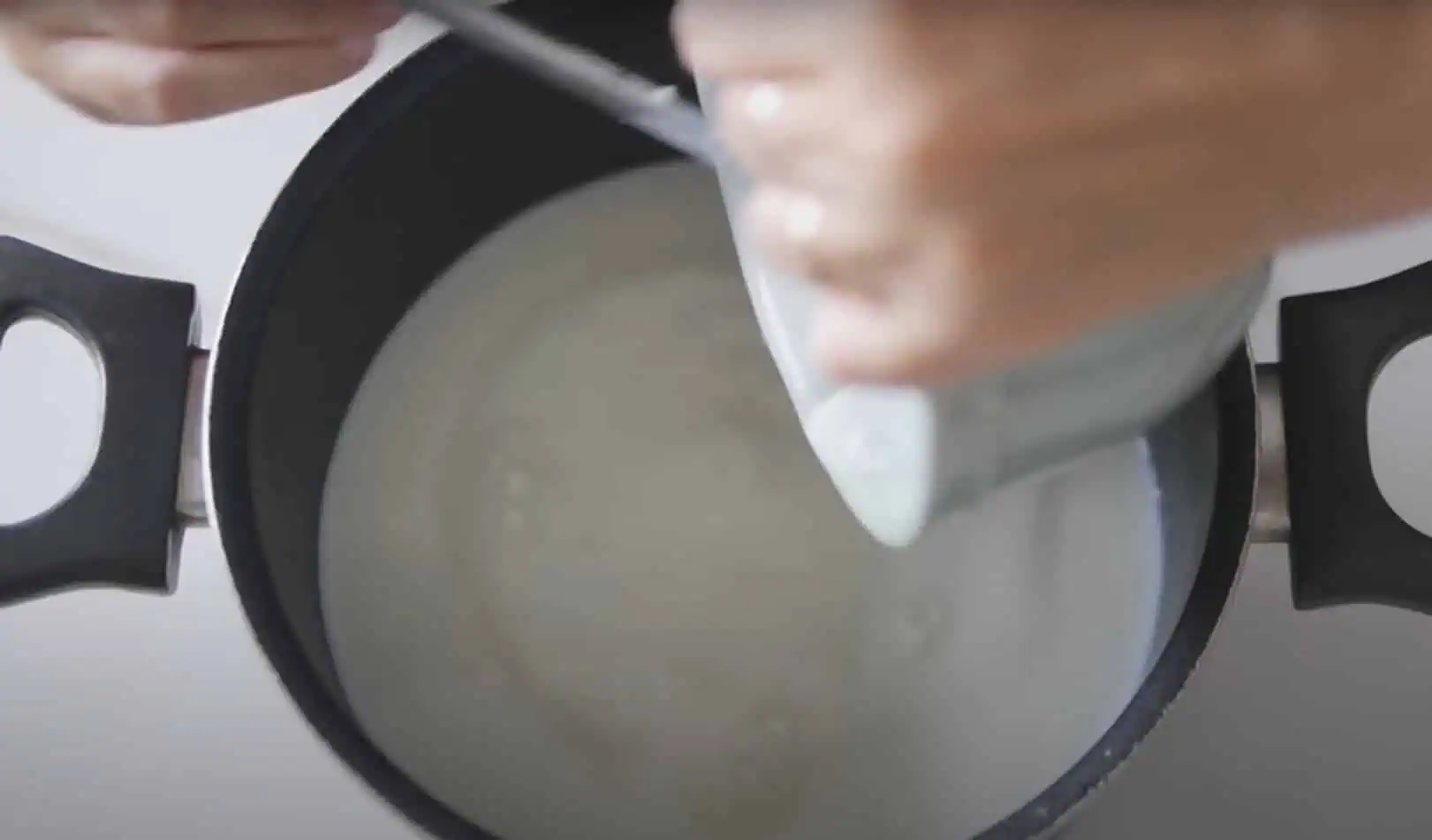 Ako prvé si do hrnca nalejeme celý liter mlieka a zohrejeme ho na teplotu asi 70 °C.