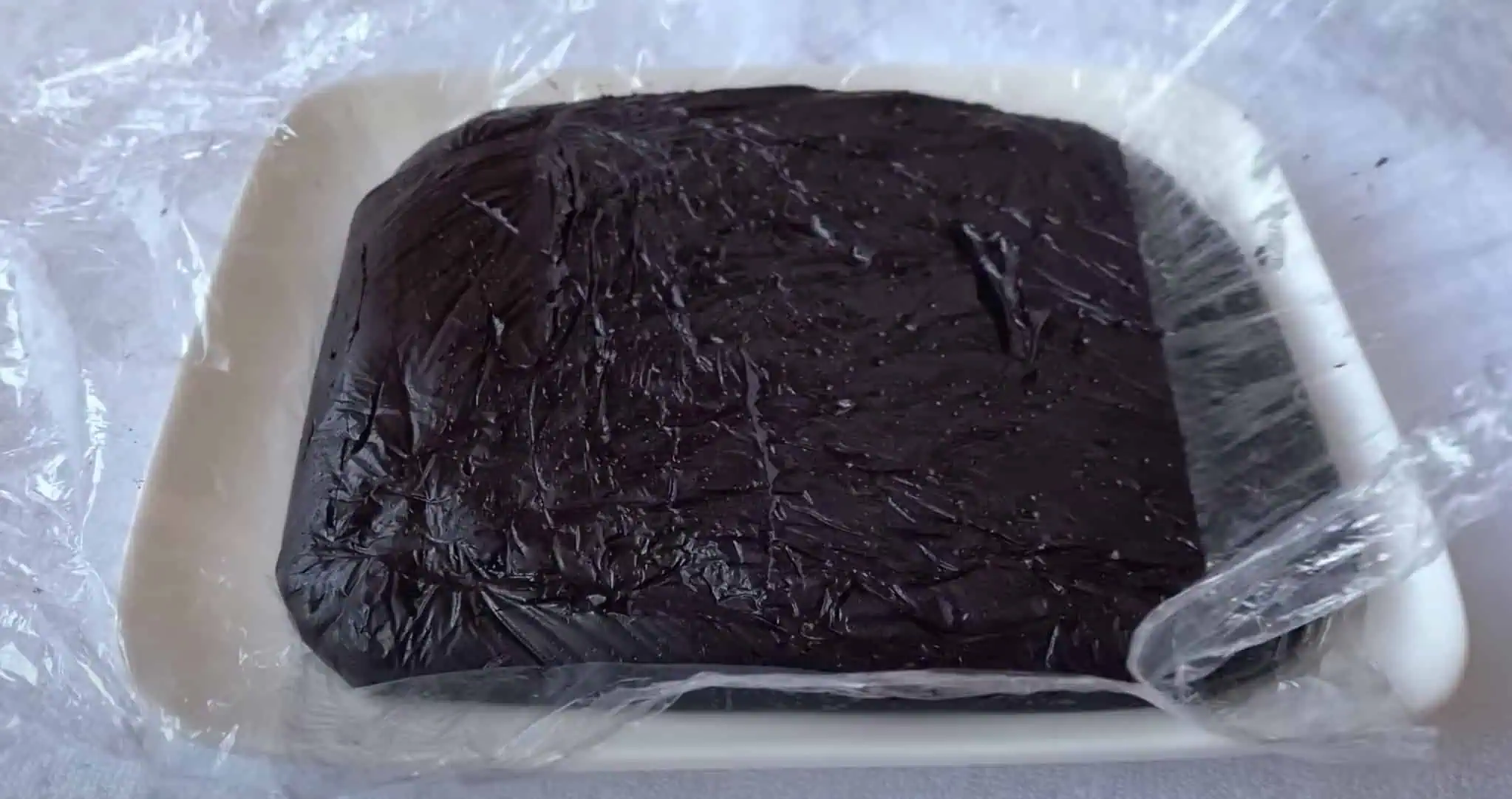 13. Podnos vyložte fóliou, a nalejte naň čokoládovú zmes.