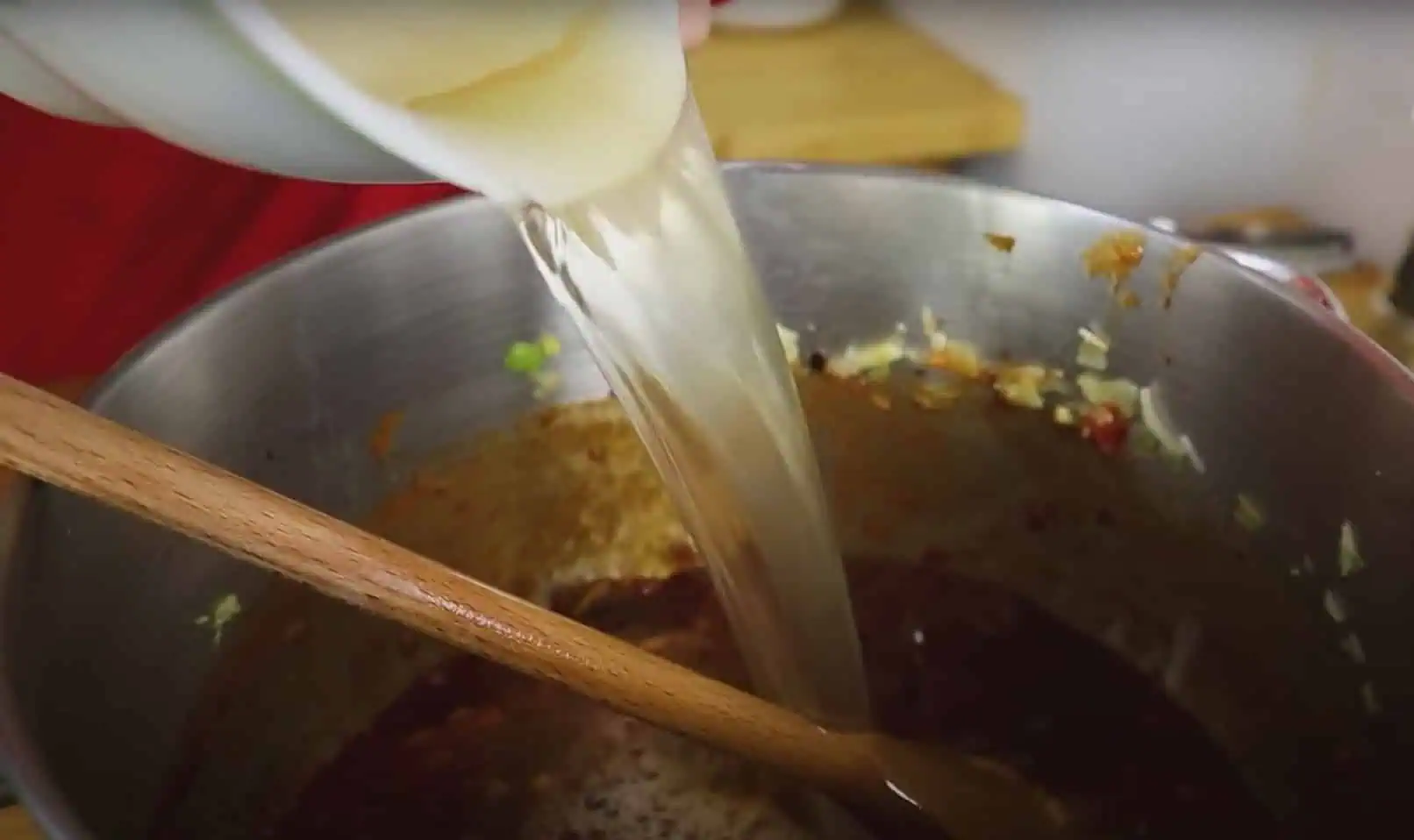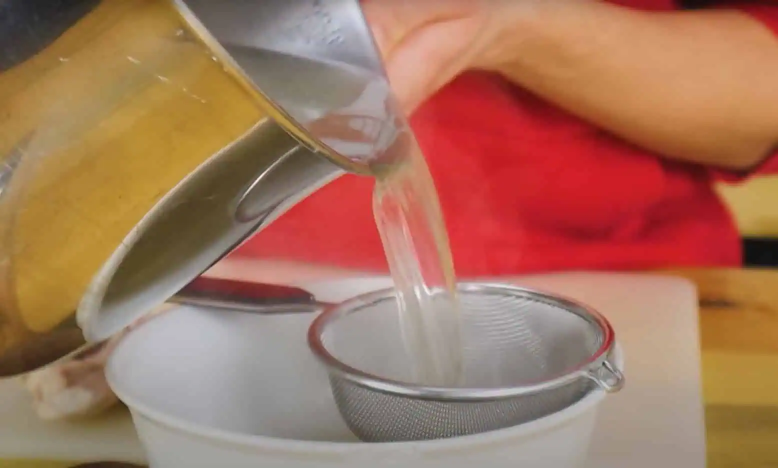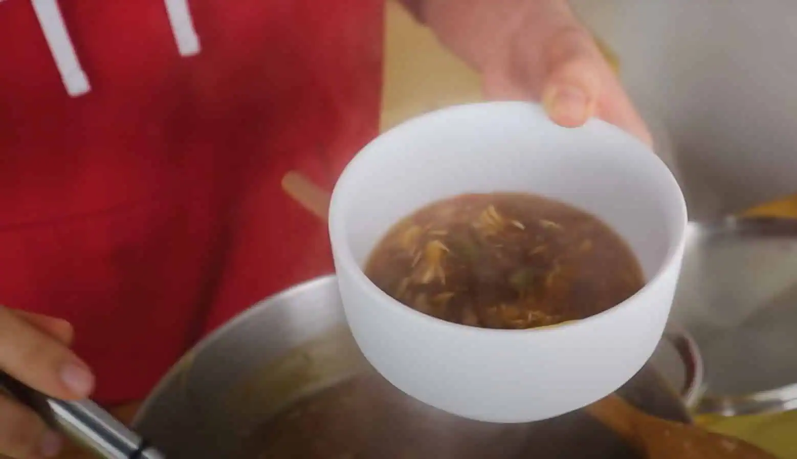 Uvarený vývar si precedíme cez sitko, mäso a zázvor vyberieme a zvyšok môžeme vyhodiť.