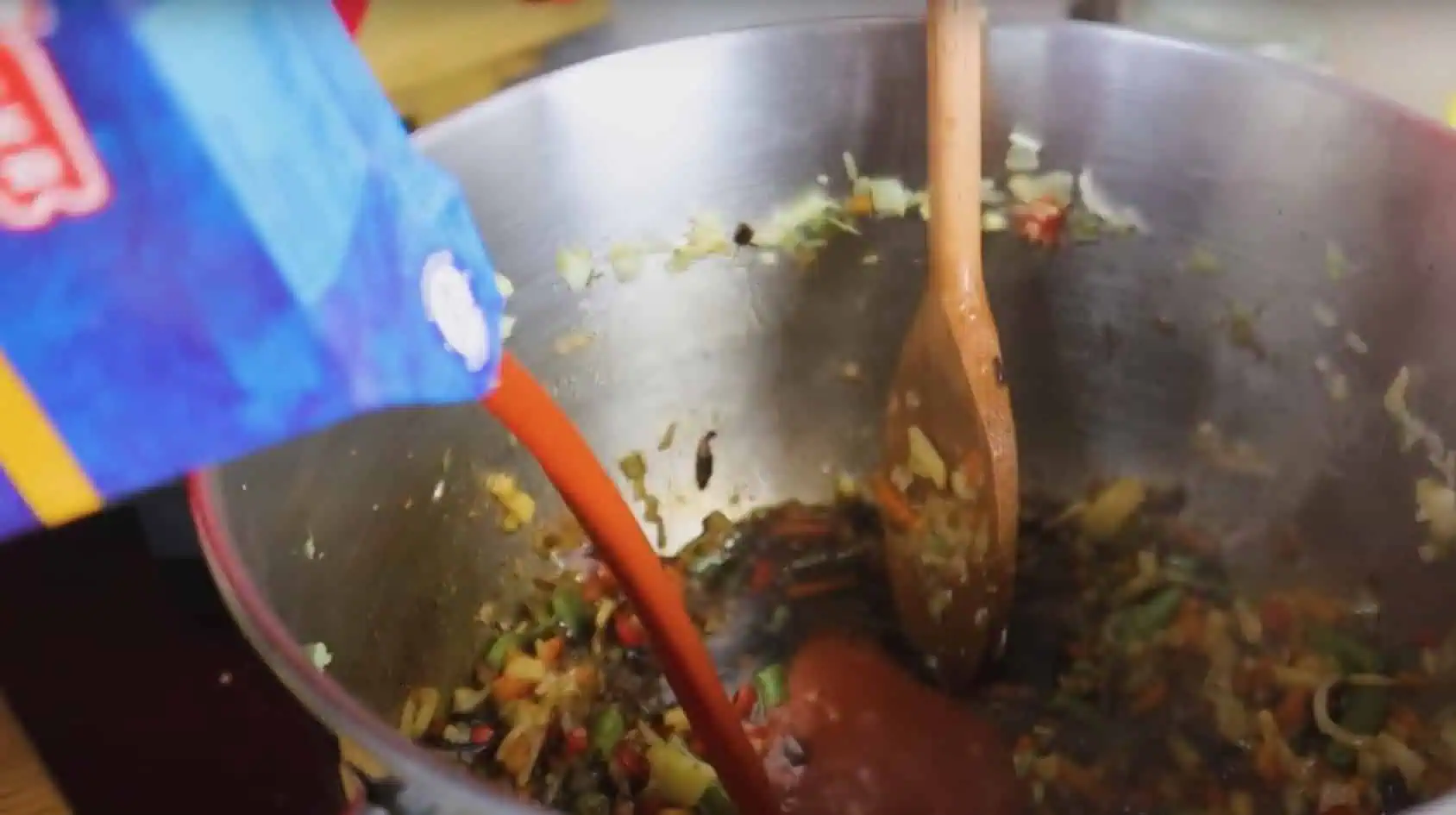 Teraz pridáme do hrnca paradajkový pretlak a na malé kúsky pokrájaný zázvor.