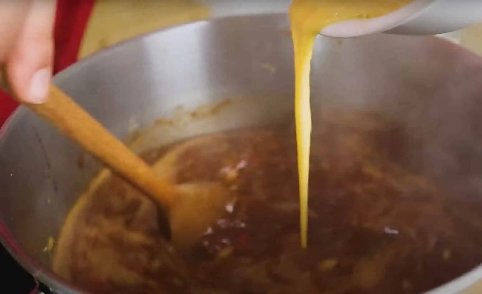 Na záver dochutíme polievku ešte octom a zahustíme vodou zriedeným kukuričným škrobom.