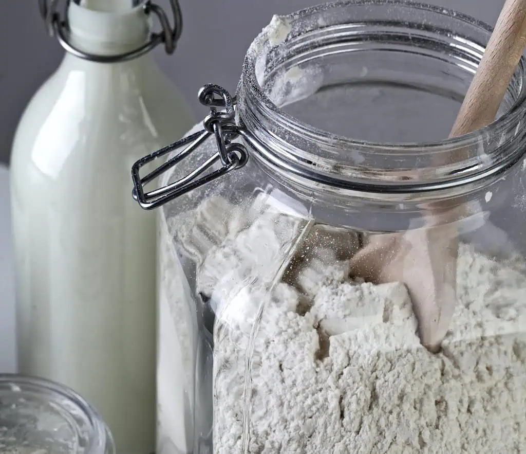 Do misky nadrobíme droždie, pridáme vodu, mlieko, múku, cukor.