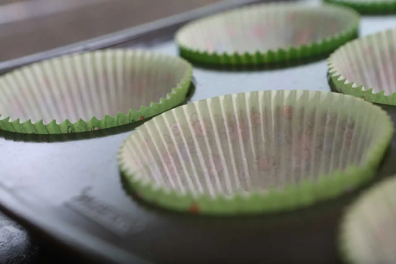 Do formy na muffiny vložíme papierové košíčky.