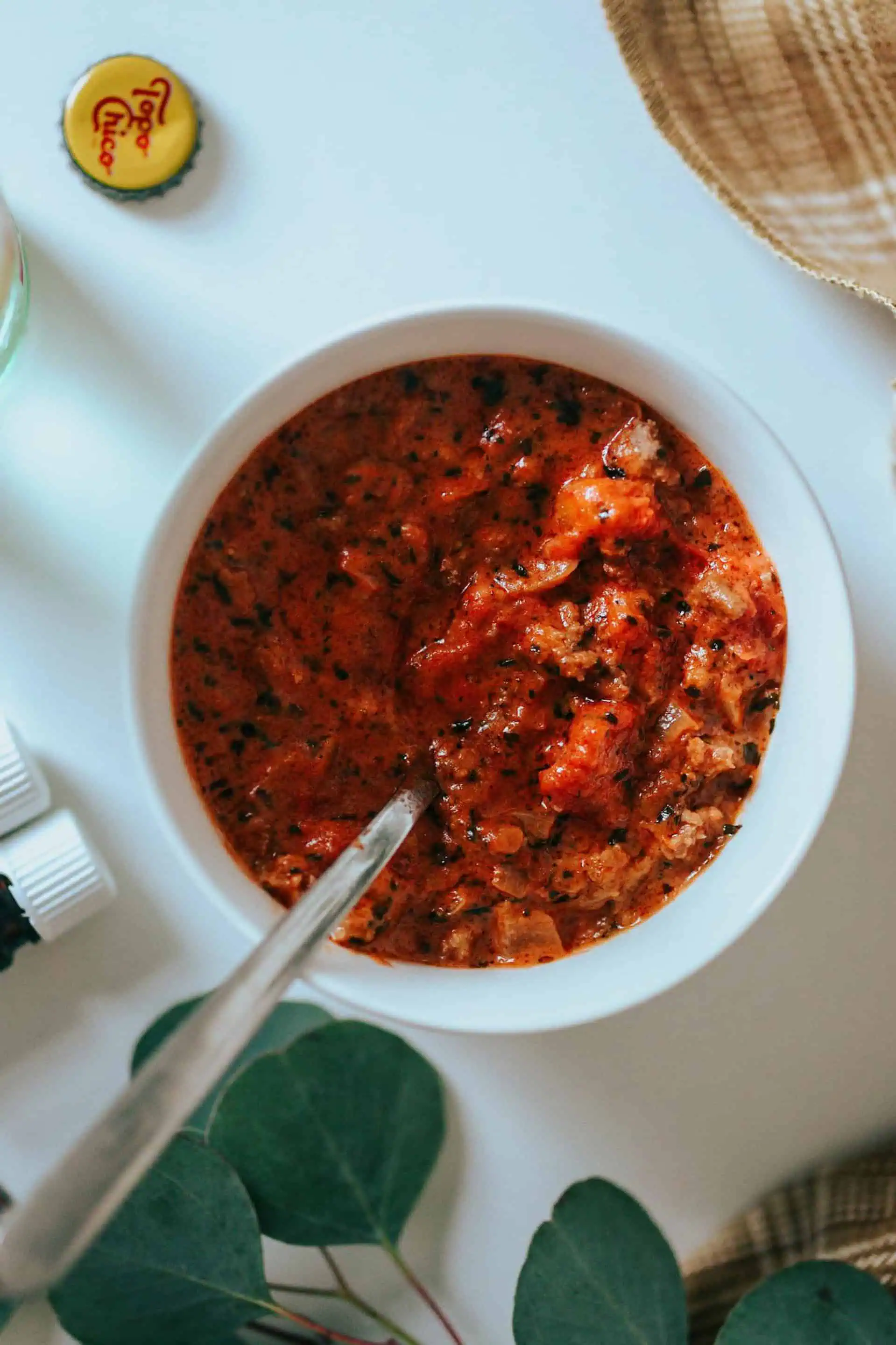 Papriku pridáme do hrnca, posolíme zvyškom soli a za občasného miešania varíme na sporáku asi 20 minút.