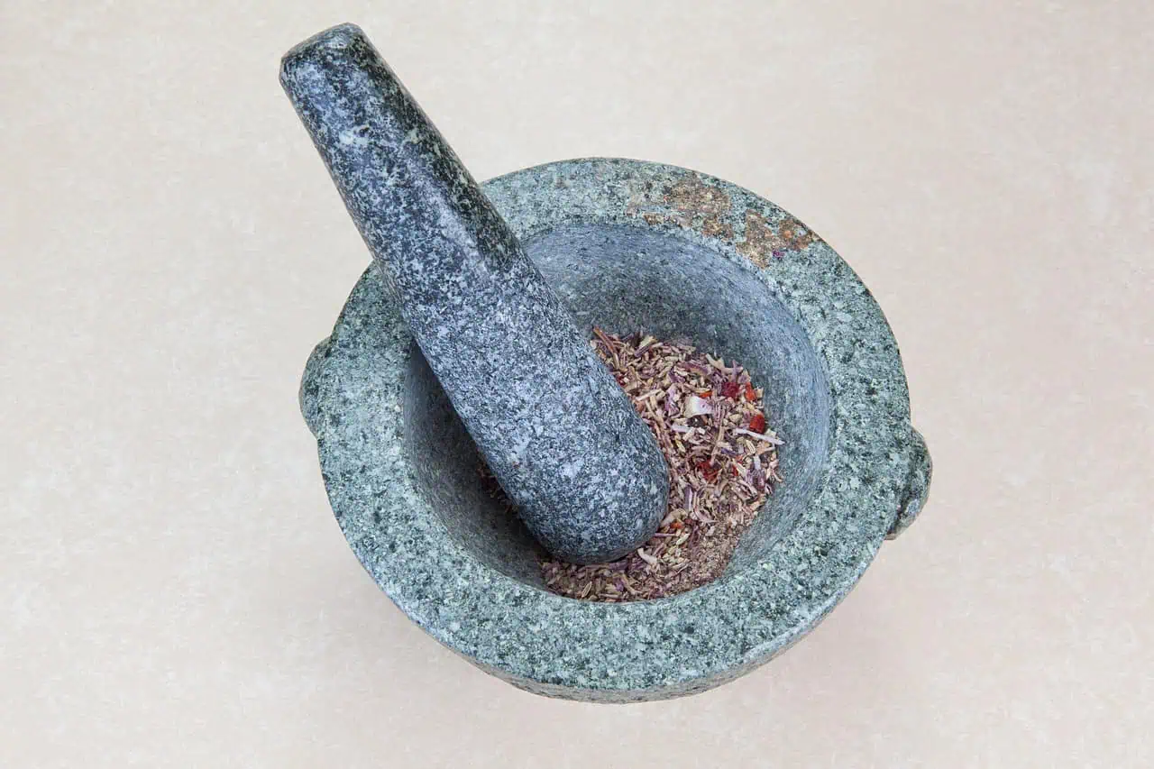 V mažiari rozdrvíme zmes korenia a koriander.