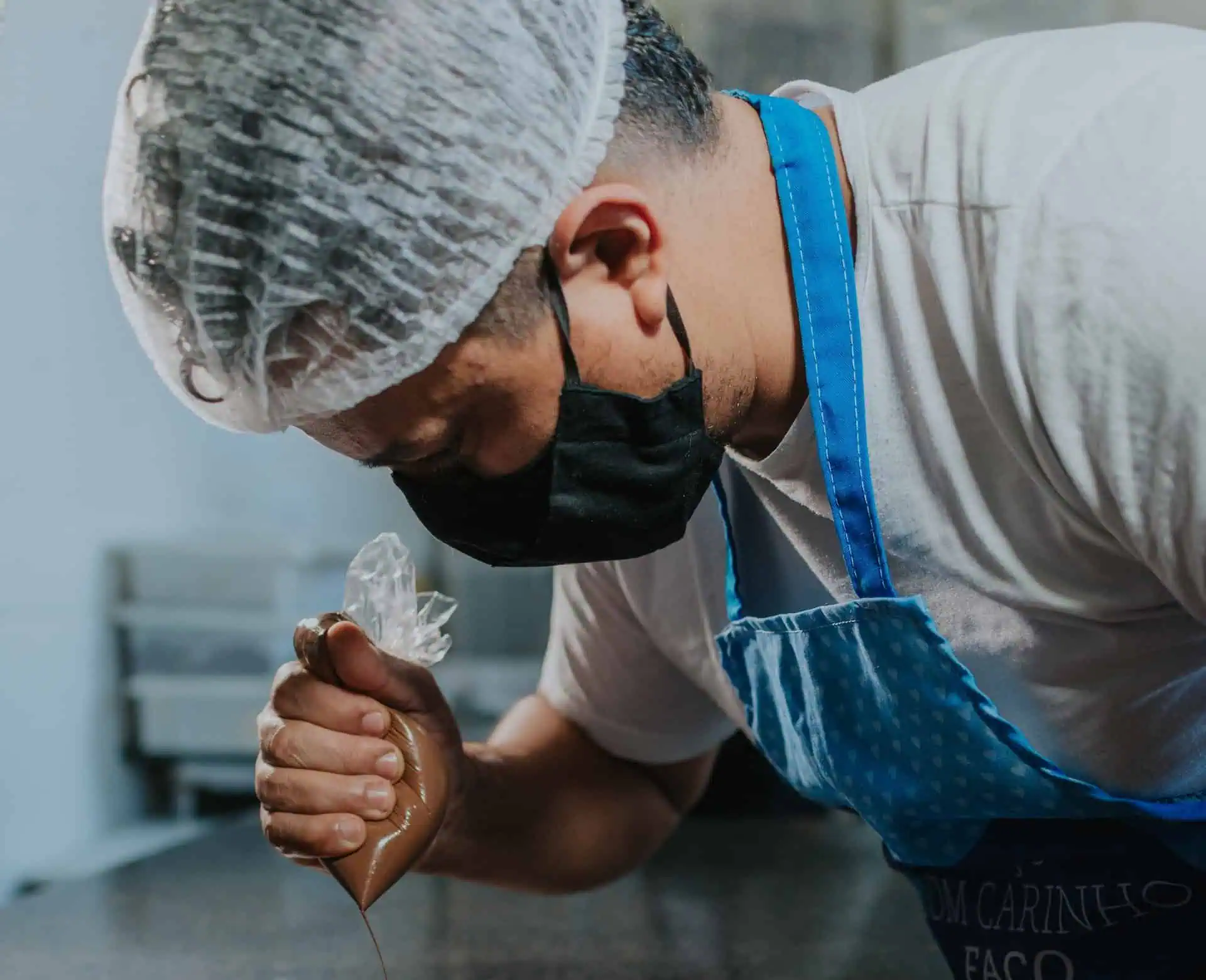 Polevu nanesieme na koláč pomocou cukrárskeho vrecka.