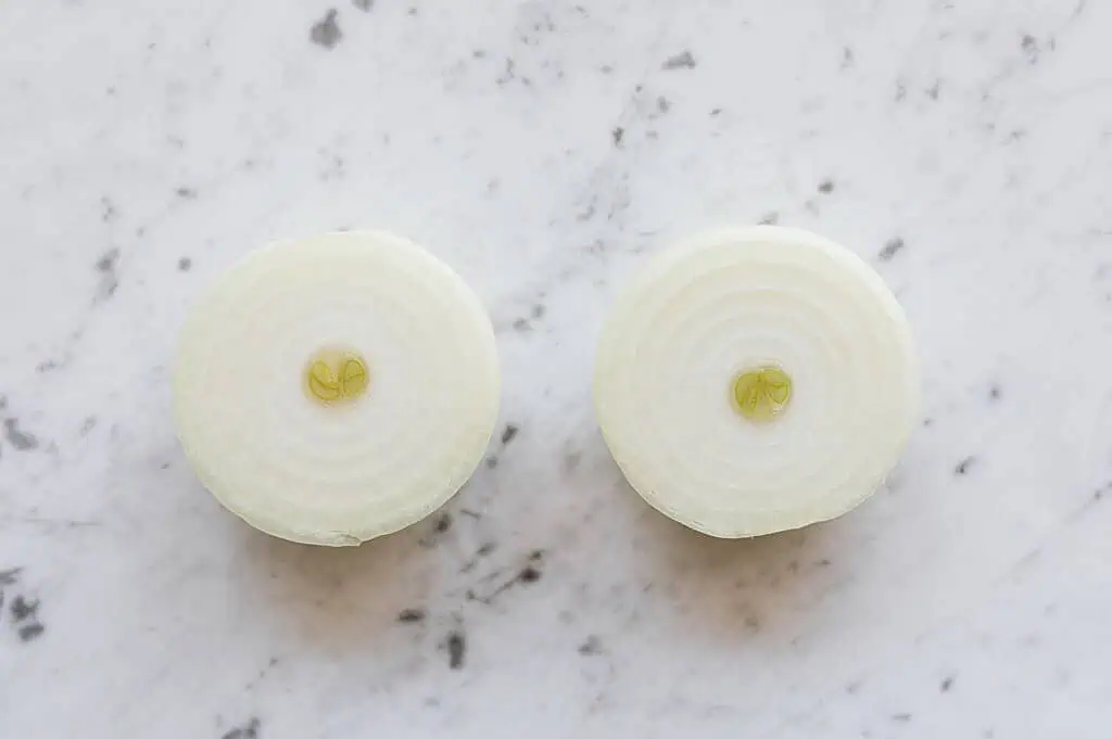 Cibuľu prekrojíme na polovicu a všetku zeleninu vložíme do hrnca.