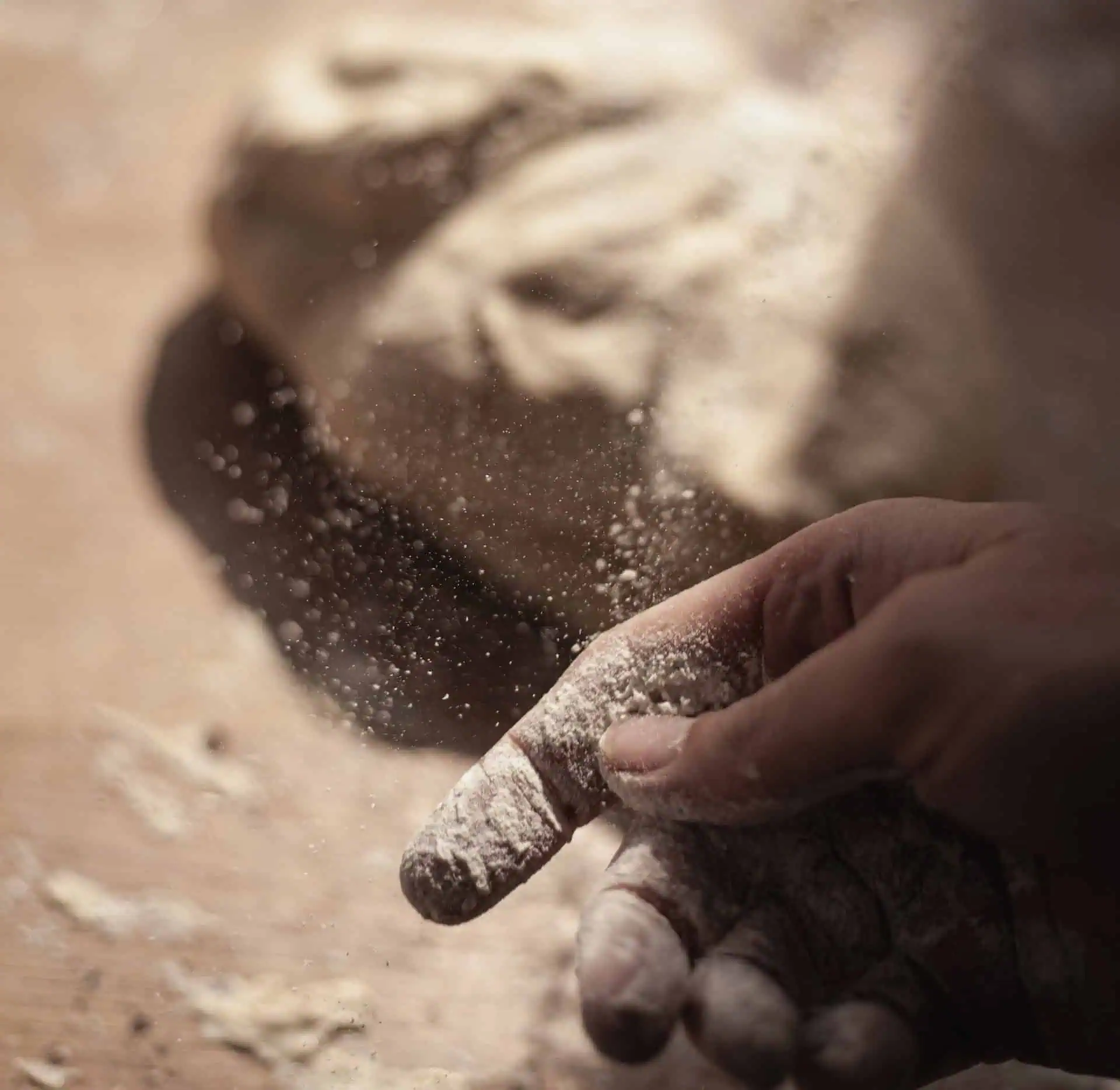 Ruku si namočíme vo vode a nakysnuté cesto jednoducho otočíme 4-6 krát (viď video).