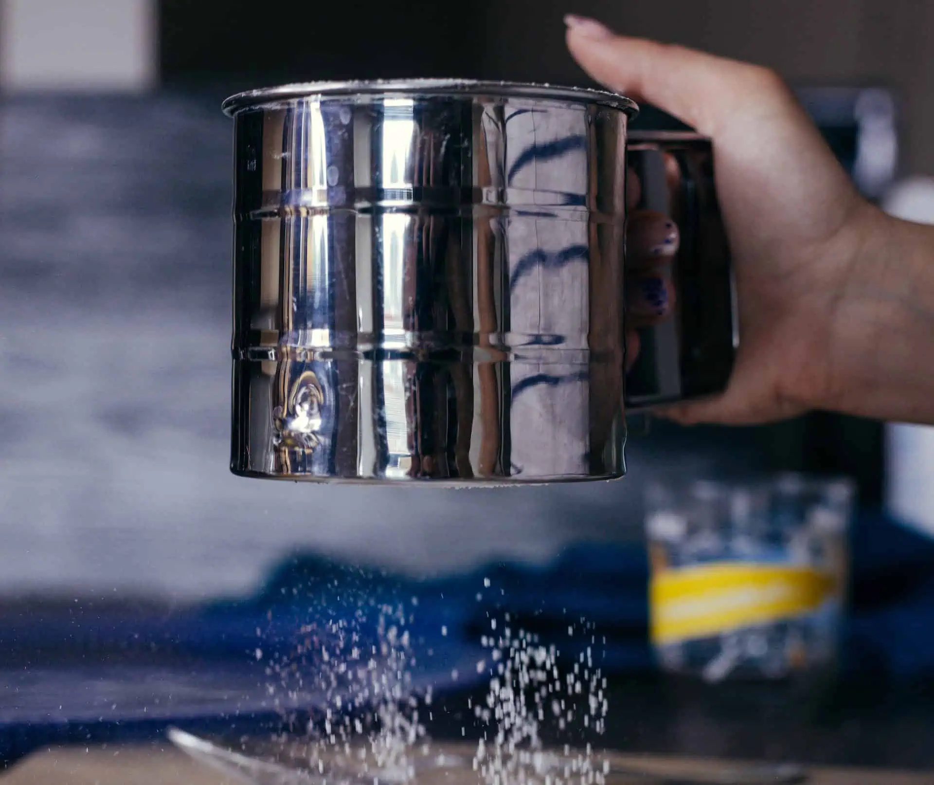 Potom do zmesi postupne preosejeme múku s práškom do pečiva a zamiešame.