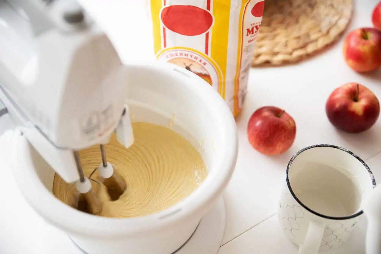 Bielky opäť vyšľaháme s cukrom, potom pridáme žĺtky, múku a opäť vyšľaháme cesto.