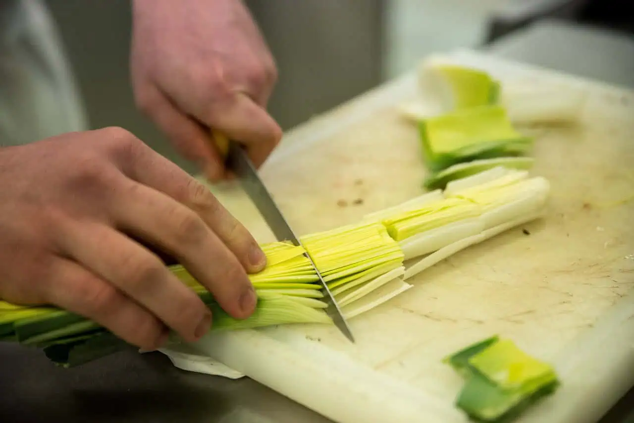 Zeleninu očistite, okrem cesnaku a cibule ju prerežte na tretiny.