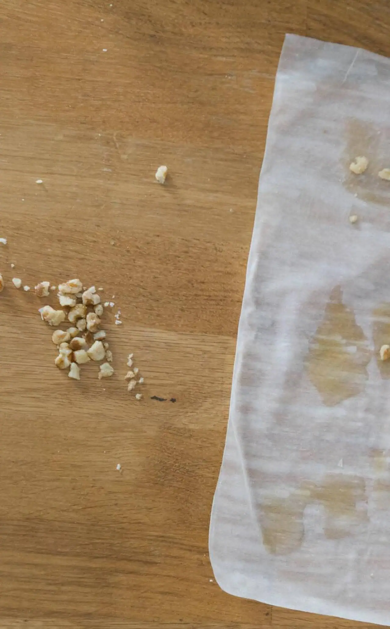 Na tvrdej podložke nožom nasekáme orechy.
