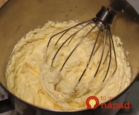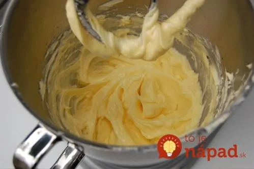 V samostatnej miske ušľaháme žĺtky s cukrom do peny. Túto zmes za stáleho šľahania vmiešame do teplého mlieka. Vznikne nám jednotná hmota – žĺtky aj mlieko sa musia prepojiť.