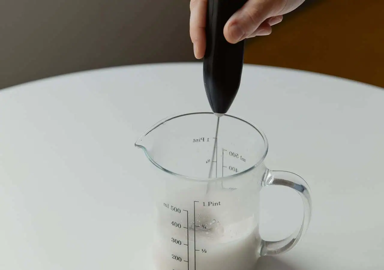 Medzitým si pripravíme nápoj: Do pohára pridáme nutellu a v samostatnej nádobe napeníme mlieko.