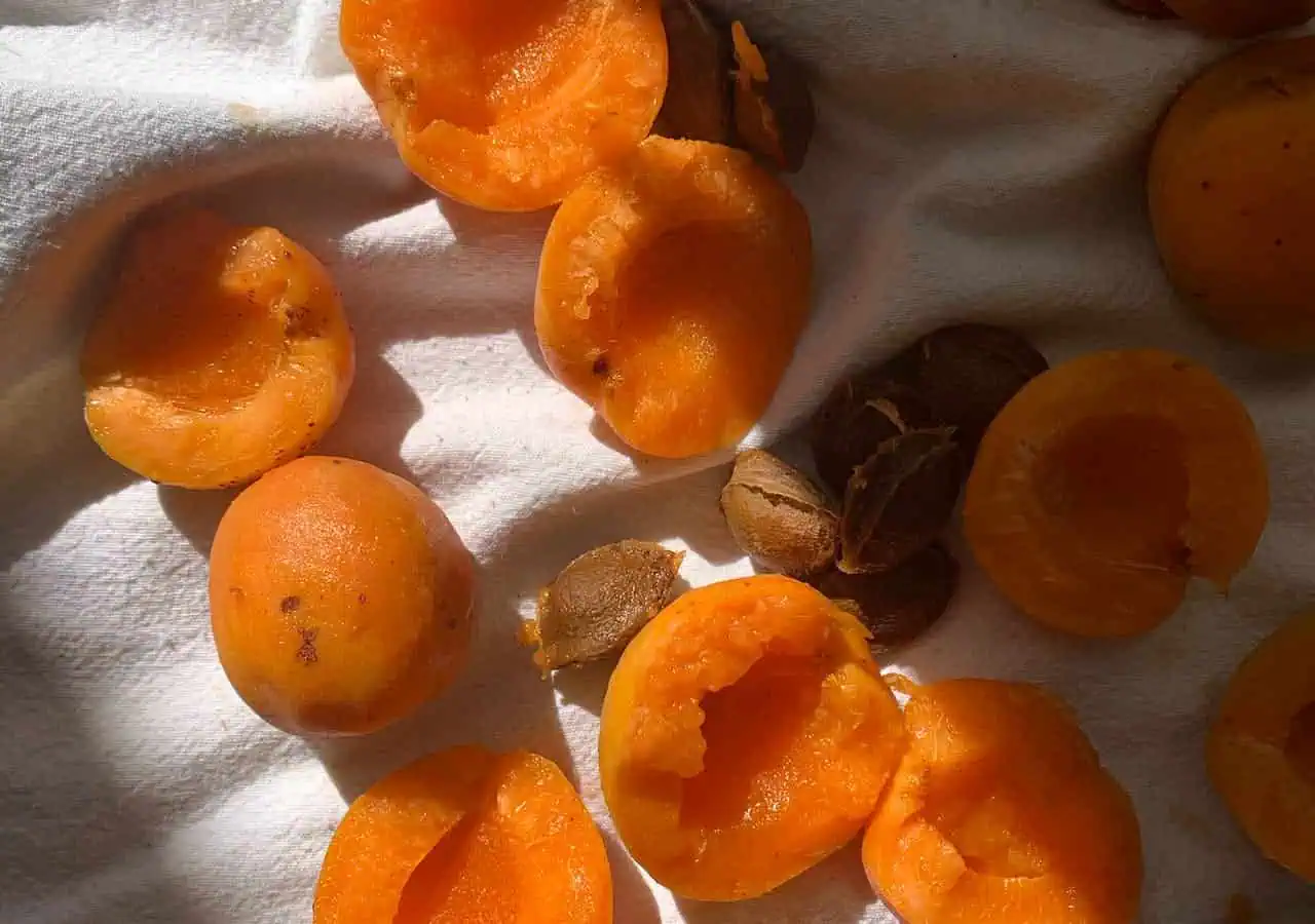 Na vrch cesta naukladáme nakrájané marhule. Nakoniec koláč posypeme mrveničkou.