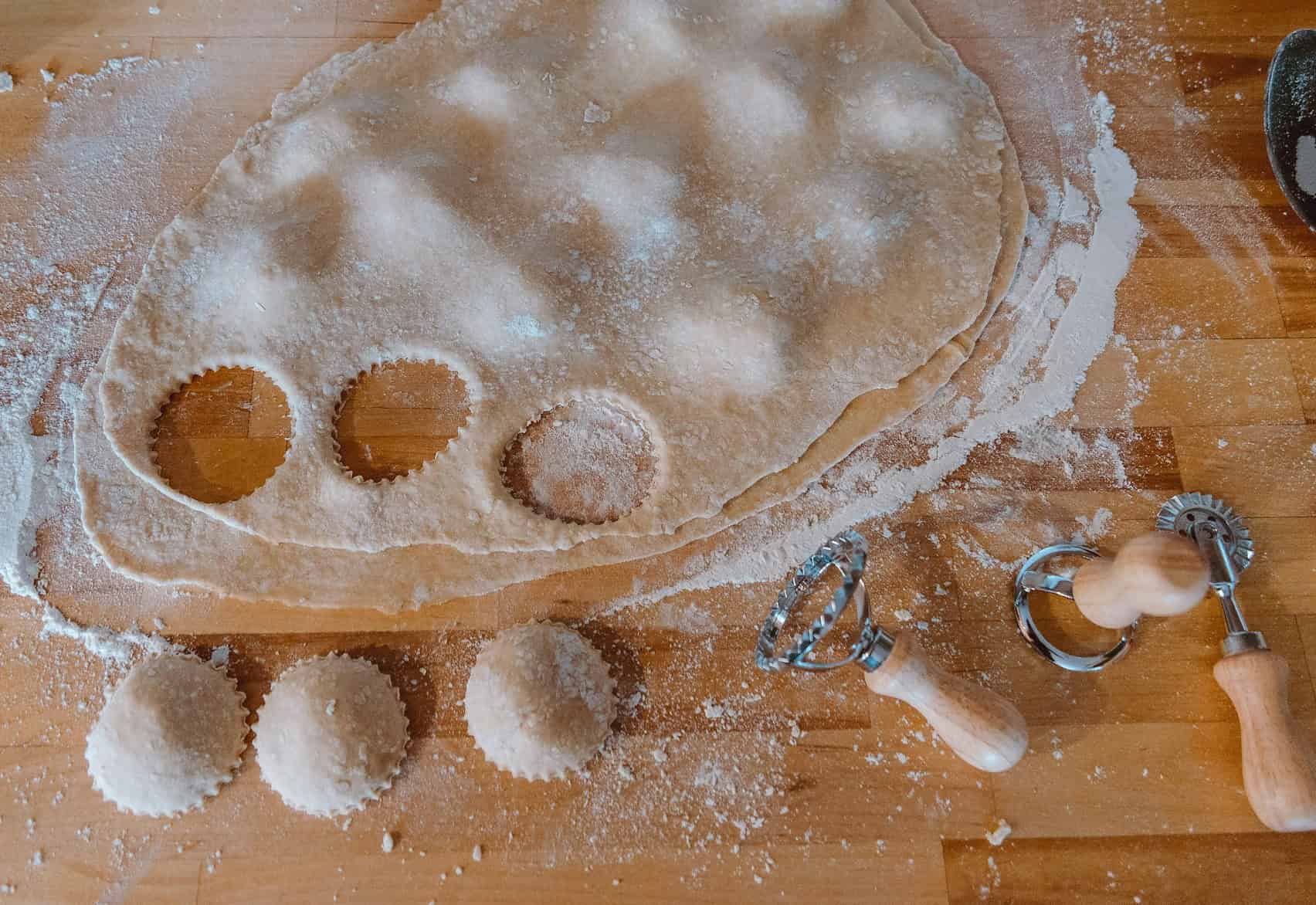 Pomocou zúbkovanej formičky povykrajujeme kruhy.