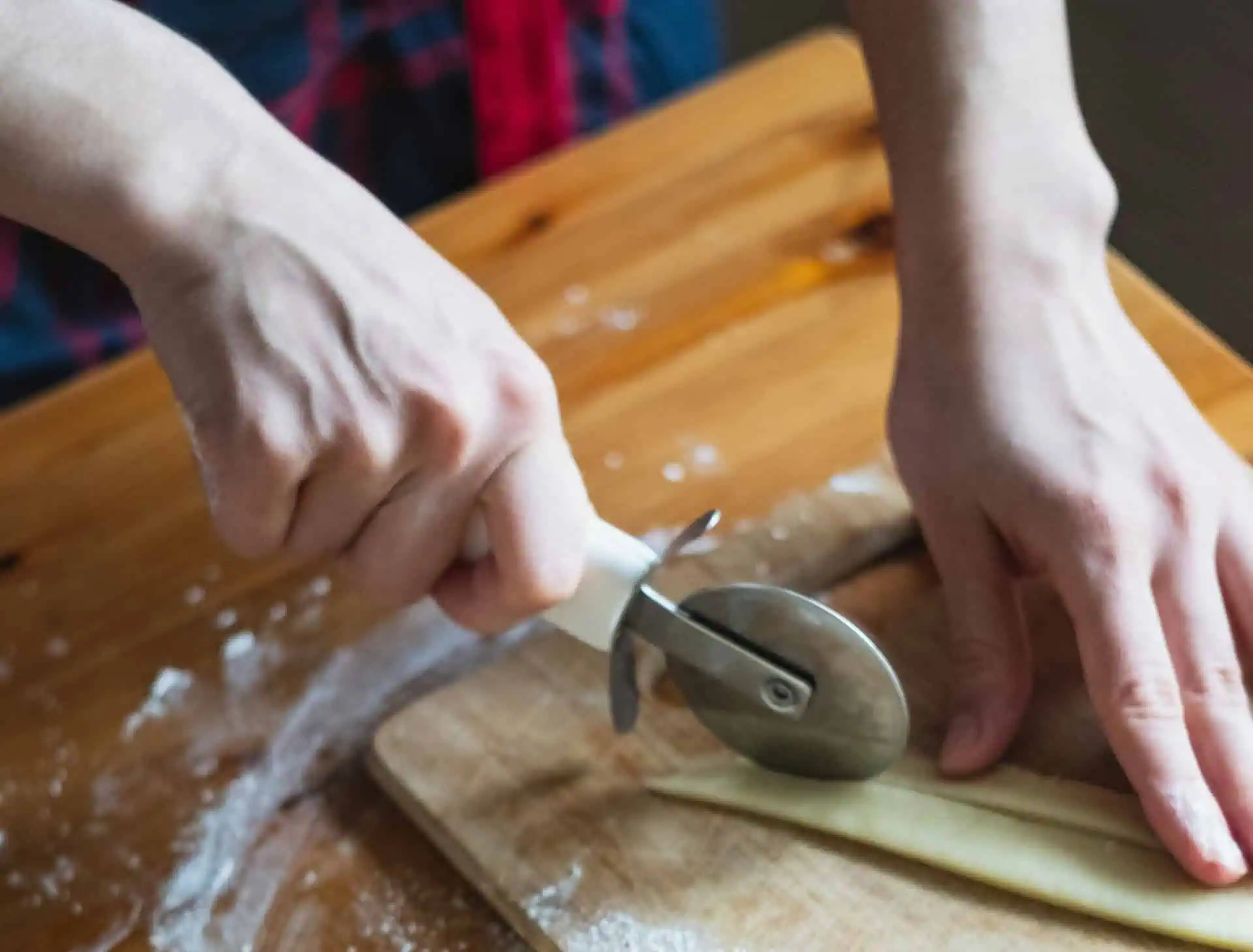 V malej miske zmiešame žĺtok s lyžicou mlieka a potrieme cesto.