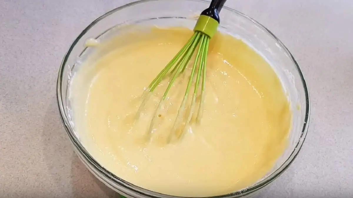 Vymiešame jednotné cesto bez hrudiek.