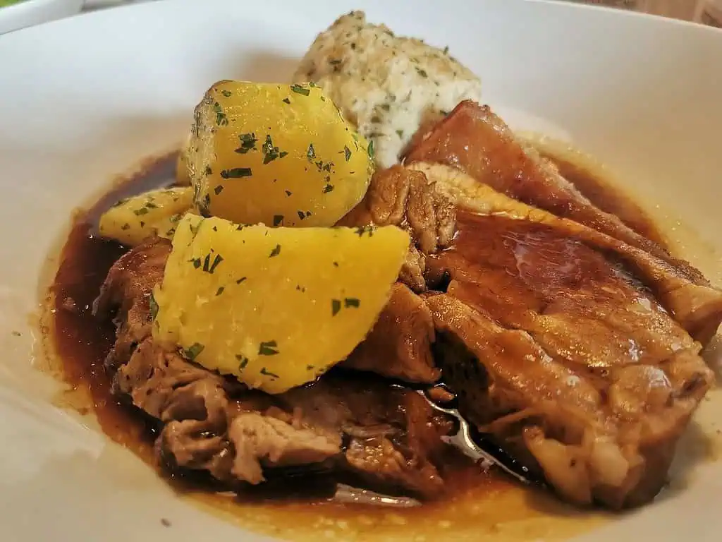Pripravte si doma lahodne jemné bravčové stehno s omáčkou a pečenými zemiakmi.