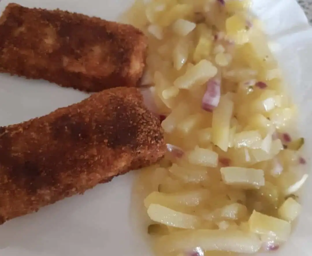 Vynikajúci šalátik k rezeňom, fašírkam, alebo pečenému bôčiku.