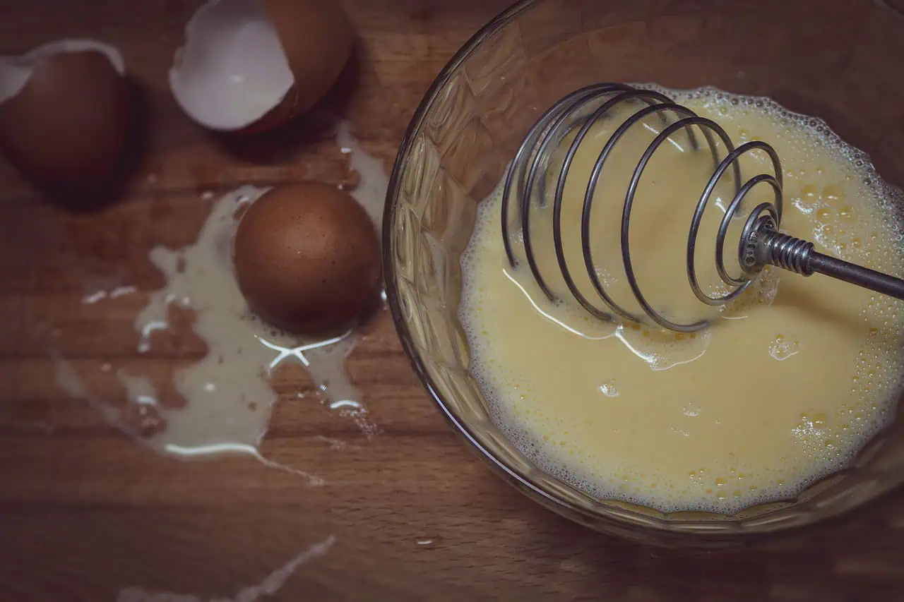 Šľaháme mixérom pri vysokých otáčkach, kým nevznikne hustá biela pena.
