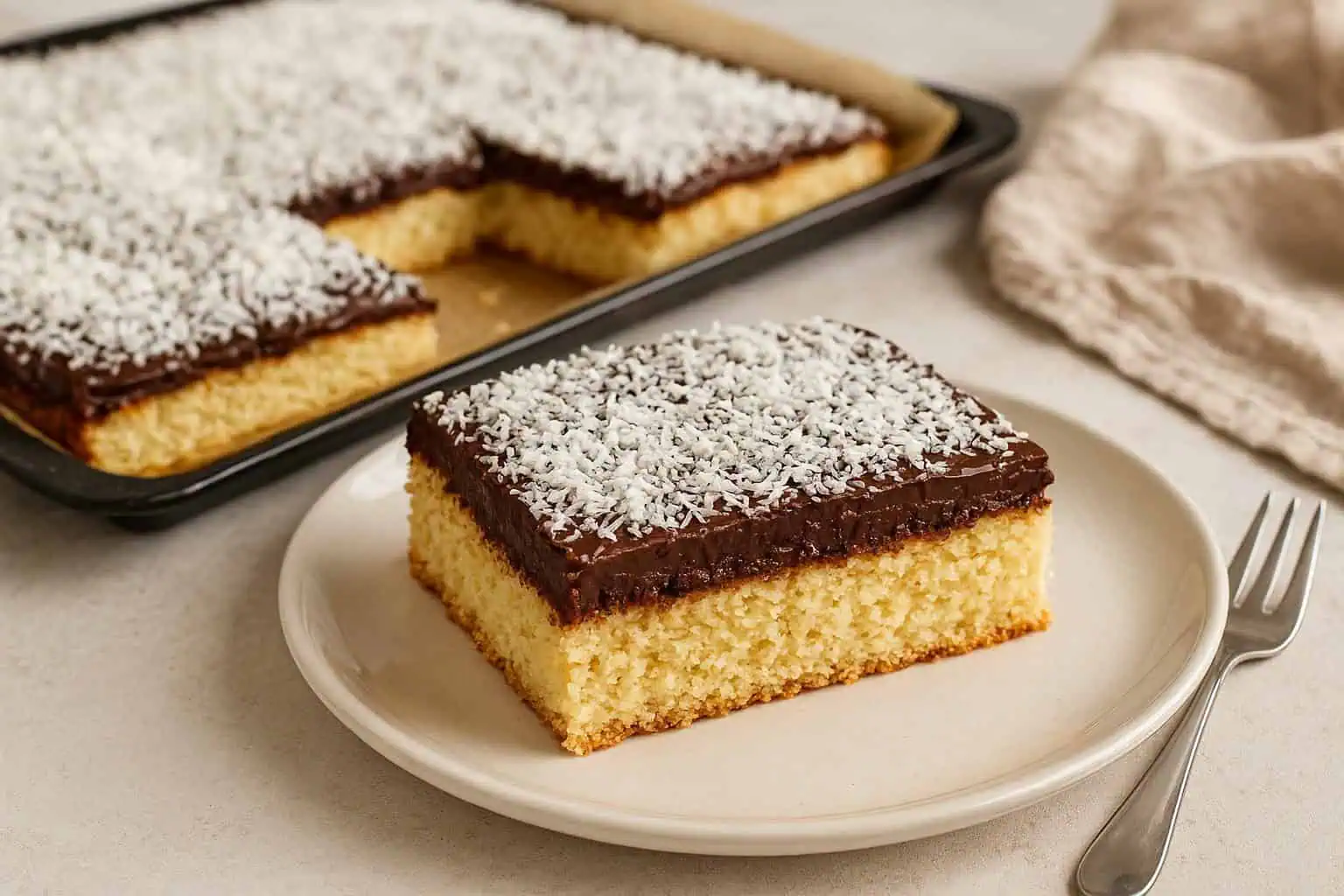 Nadýchané kokosové cesto, hodvábny kakaový krém a jemná vrstva kokosu na povrchu vytvárajú dokonale vyváženú kombináciu chutí.