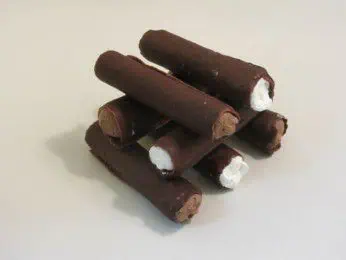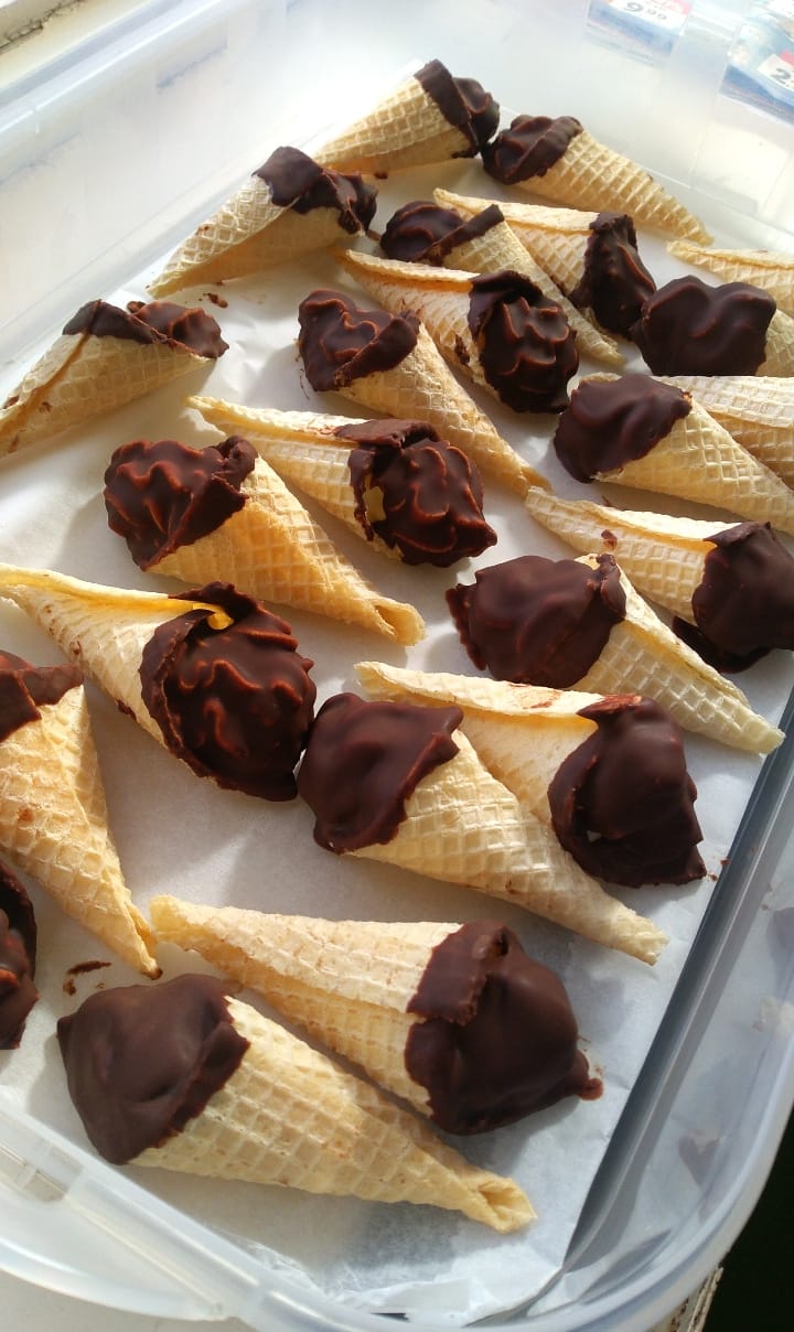 Môžete pokojne aj akýkoľvek iný krém. Konce namočíme v roztopenej čokoláde, necháme dobre stuhnúť a je to.
