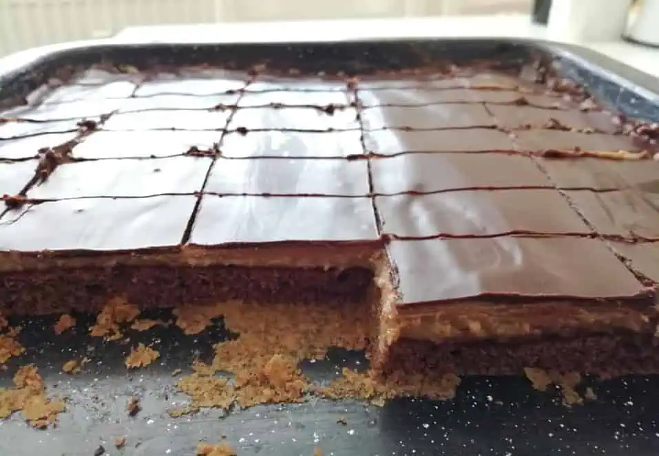 Navrstvíme na orechovú plnku a polejeme čokoládou – tú získame z roztopenej horkej čokolády a 2 lyžíc oleja.