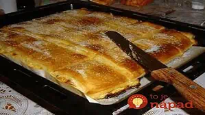 Zmes navrstvíme na plech (25×30 cm) vymastený a vysypaný múkou, prípadne vyložený papierom na pečenie.