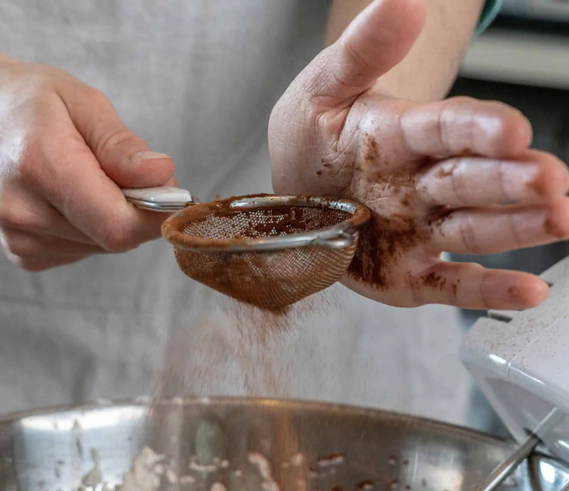 Do veľkej misy a jednej malej nasypeme kakao a plnku premiešame.