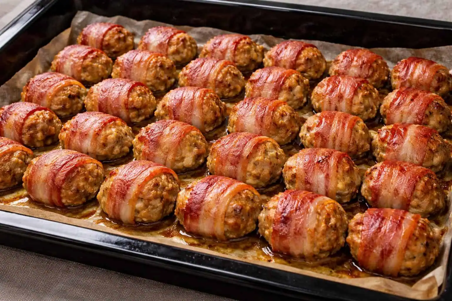Z mäsa formujeme guľky, ktoré prikryjeme plátkom slaninky.