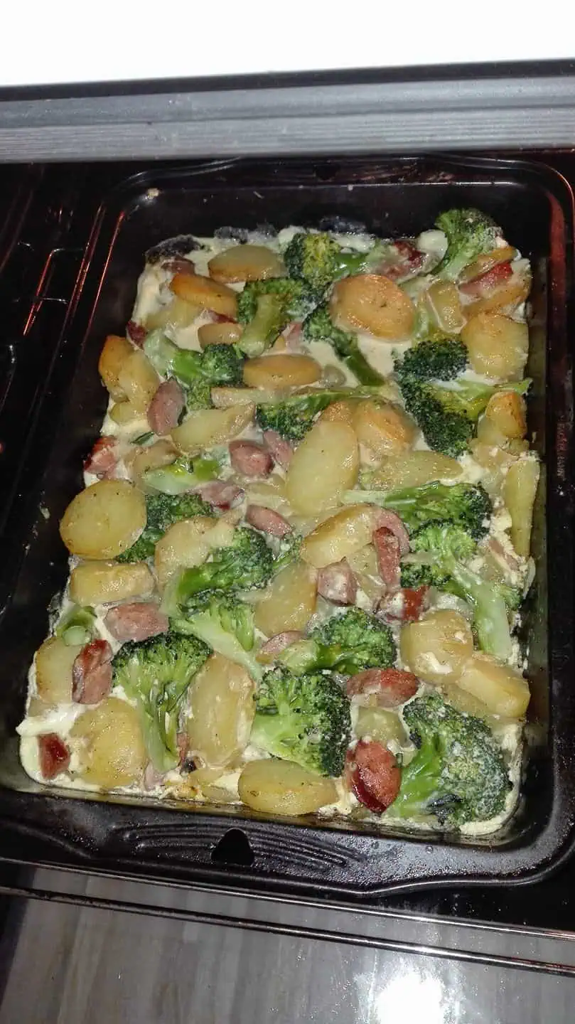 Verzia z rúry (o niečo dlhšia ale výborná): Uvarené cestoviny navrstvíme na pekáč, pridáme aj brokolicu a zalejeme omáčkou, posypeme syrom. Dáme do rúry na 180 stupňov variť na 20 minút.