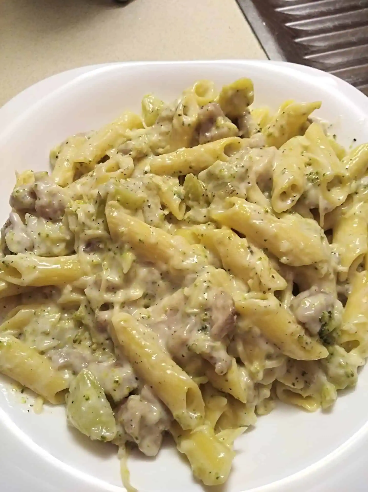 Verzia z rúry (o niečo dlhšia ale výborná): Uvarené cestoviny navrstvíme na pekáč, pridáme aj brokolicu a zalejeme omáčkou, posypeme syrom. Dáme do rúry na 180 stupňov variť na 20 minút.