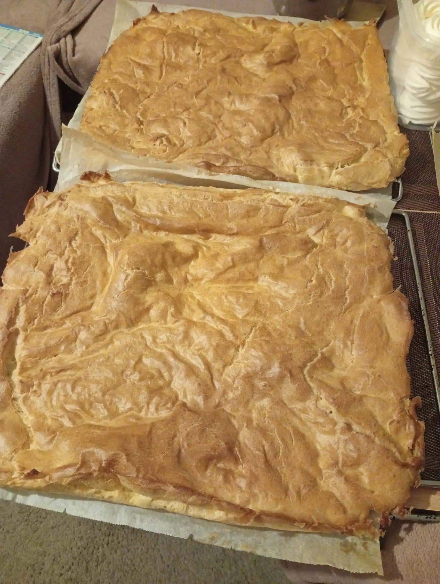 Hotový plát zložíme, natrieme krémom a zrolujeme.