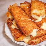 Do cestíčka vložíme kúsky mäsa, starostlivo ich obalíme a necháme odstáť, aby mäso natiahlo soľ a najmä cesnak. Kúsky mäsa smažíme vo vyššej vrstve oleja dozlatista. Pred smažením môžete mäso ešte obaliť v v strúhanke, ale nie je to potrebné. Mäsko chutí vynikajúco.