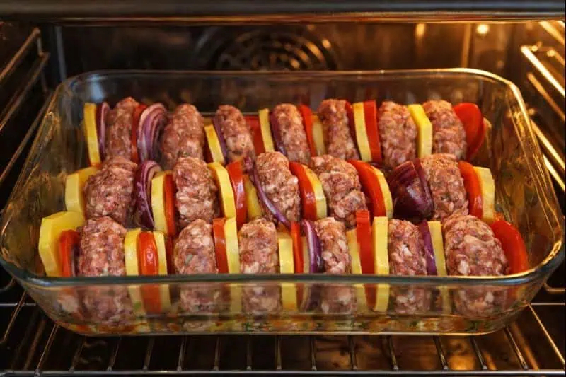 Nakoniec pridáme klobásu nakrájanú na kolieska a pečieme ešte 15 – 20 minút.