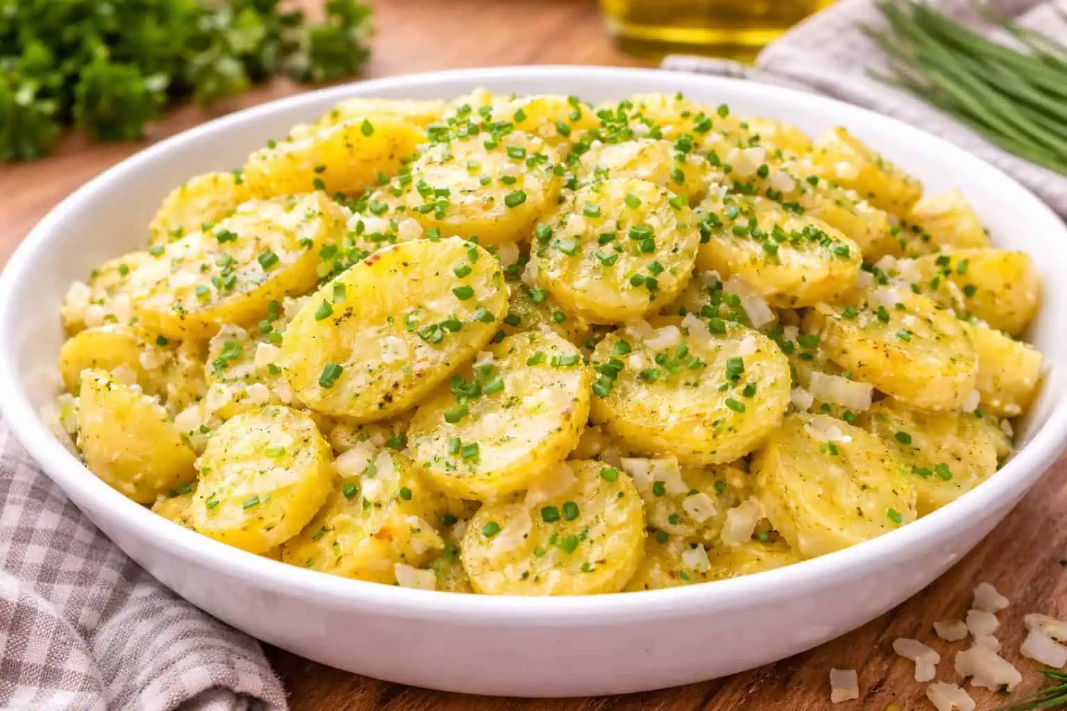 Tento tradičný recept pochádza z rakúskej kuchyne a jeho kúzlo spočíva v jednoduchosti – žiadna ťažká majonéza, len jemná zálievka, ktorá krásne zvýrazní chuť zemiakov.