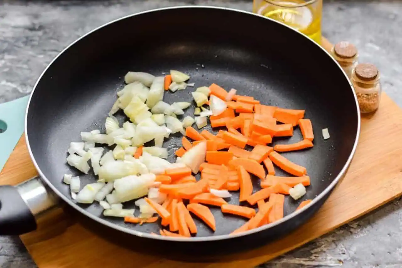 Mrkvu nastrúhame a spolu s cibuľou pridáme na panvicu.