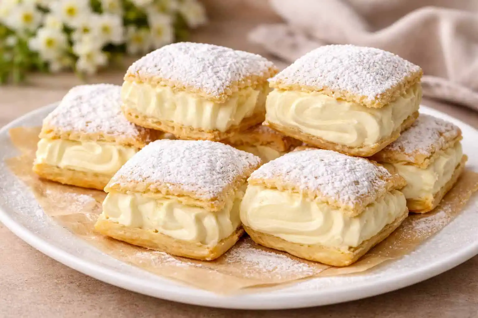 Ak hľadáte dezert, ktorý je rýchly na prípravu a zároveň dokonale lahodný, tieto krehké podušky z lístkového cesta Vás okamžite presvedčia.
